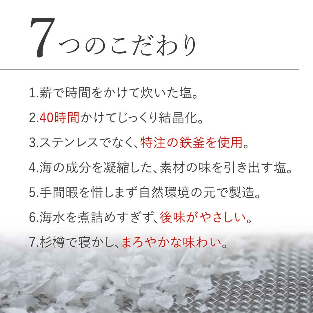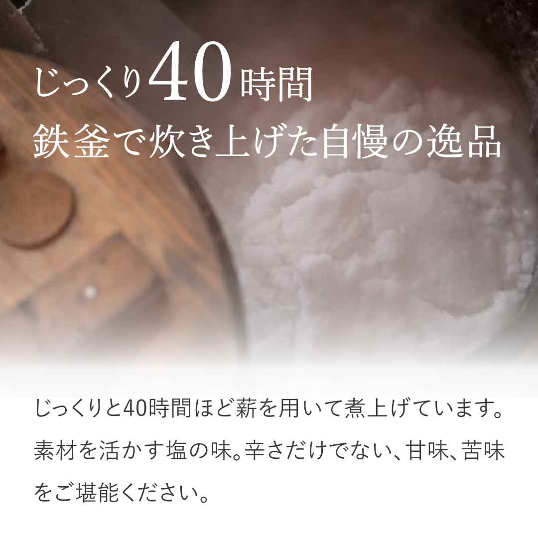 余分なものは一切なし。まろやかな風味と舌ざわりで、辛さのなかにほのかな甘みや苦みが感じられるお塩です。