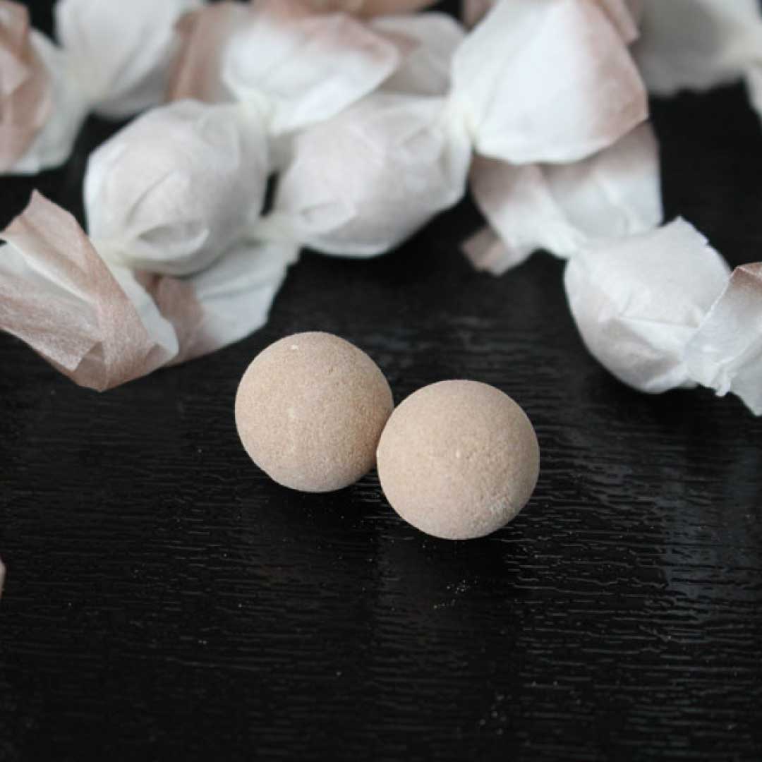 和三盆糖に芳醇な香りとコクの純正のココアをブレンドし、型打ちした干菓子。アレルギー物質不使用の他にはない味わいです。